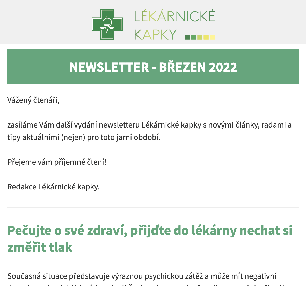 Lékárnické kapky - newsletter, březen 2022
