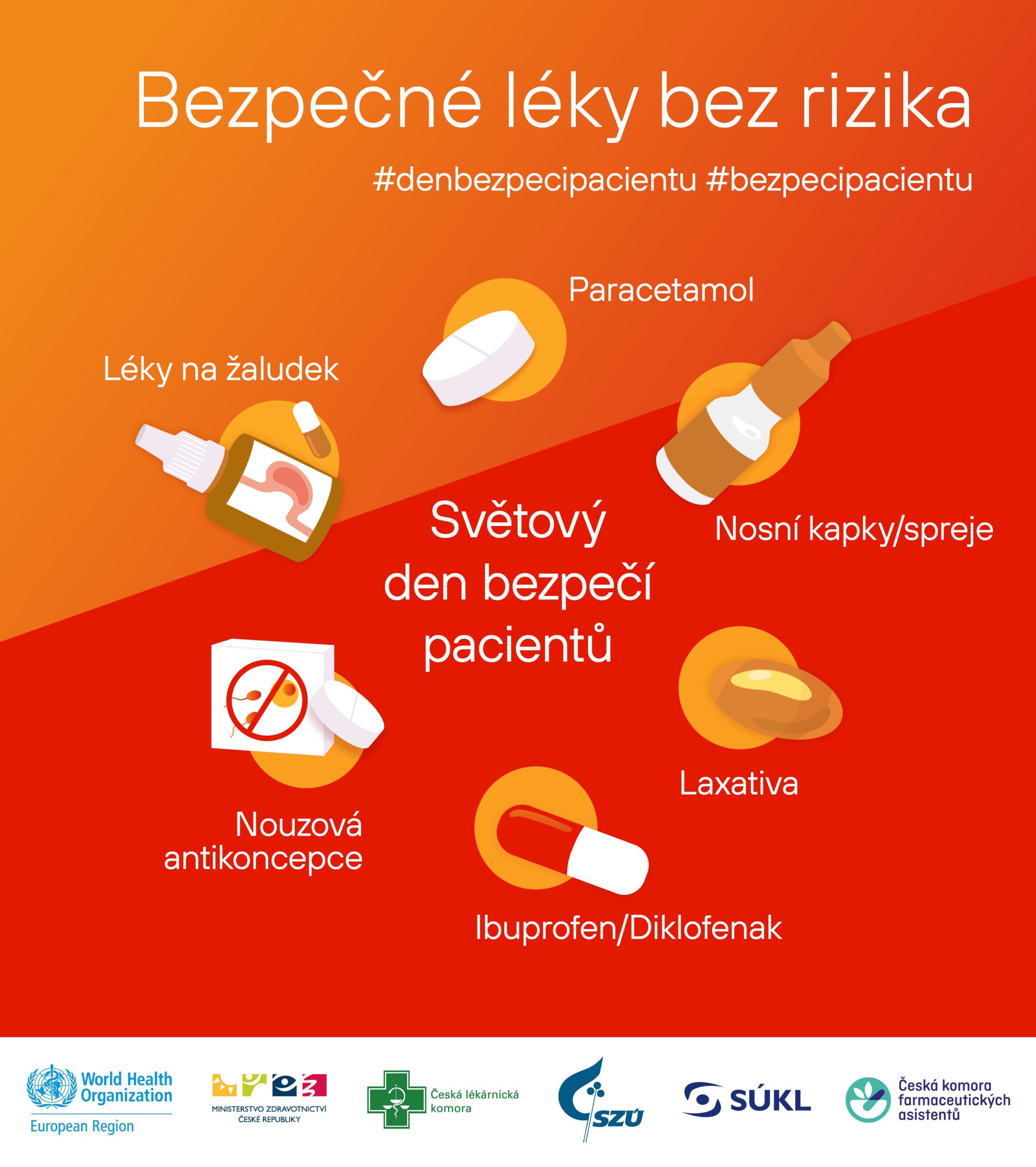Světový den bezpečí pacientů připadající na 17. září je pravidelnou iniciativou WHO, ke které se Česko připojuje od roku 2019. Cílem je zvýšit povědomí veřejnosti v oblasti kvality a bezpečí poskytované zdravotní péče. Tématem pro rok 2022 je právě bezpečnost léků. „Špatné užívání léků, jejichž výdej není vázán na lékařský předpis, a chyby během samoléčby jsou častými příčinami poškození zdraví lidí po celém světě. Těmto chybám lze předcházet. Oceňuji skvělou spolupráci s Ministerstvem zdravotnictví, SZÚ, SÚKL i komorami lékárníků a farmaceutických asistentů. Spolupráce probíhala velmi profesionálně a výsledná kampaň v ČR tak skvěle zapadá do celého konceptu,“ doplnil Srđan Matić, představitel WHO v ČR.