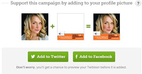 Letos poprvé mohou lékárníci a jejich příznivci vyjádřit podporu Světovému dni lékárníků i na sociálních sítích Facebook nebo Twitter prostřednictvím aplikace Twibbon.